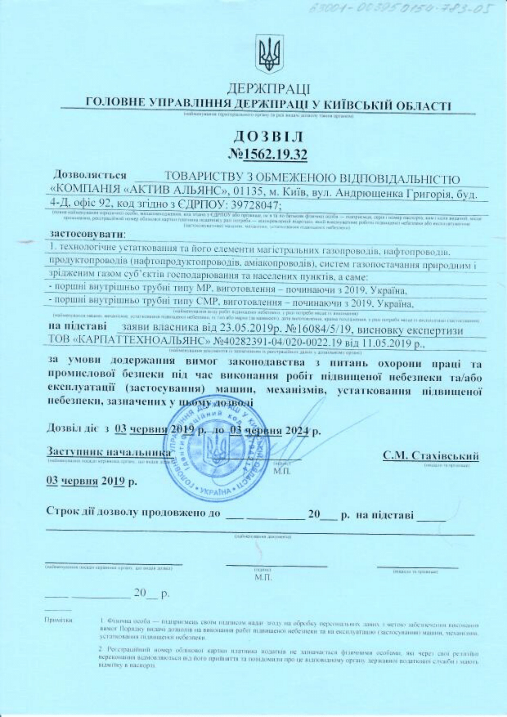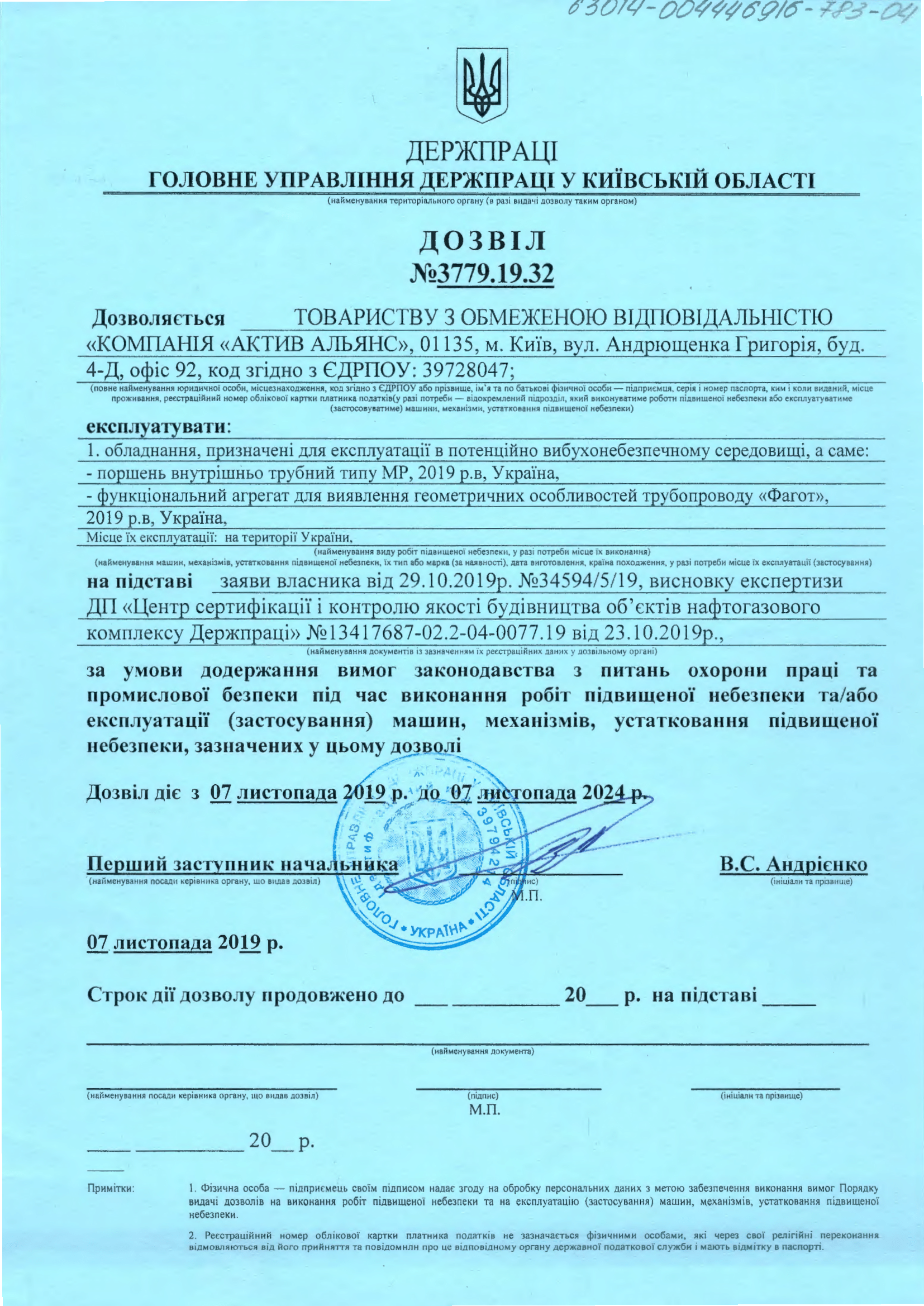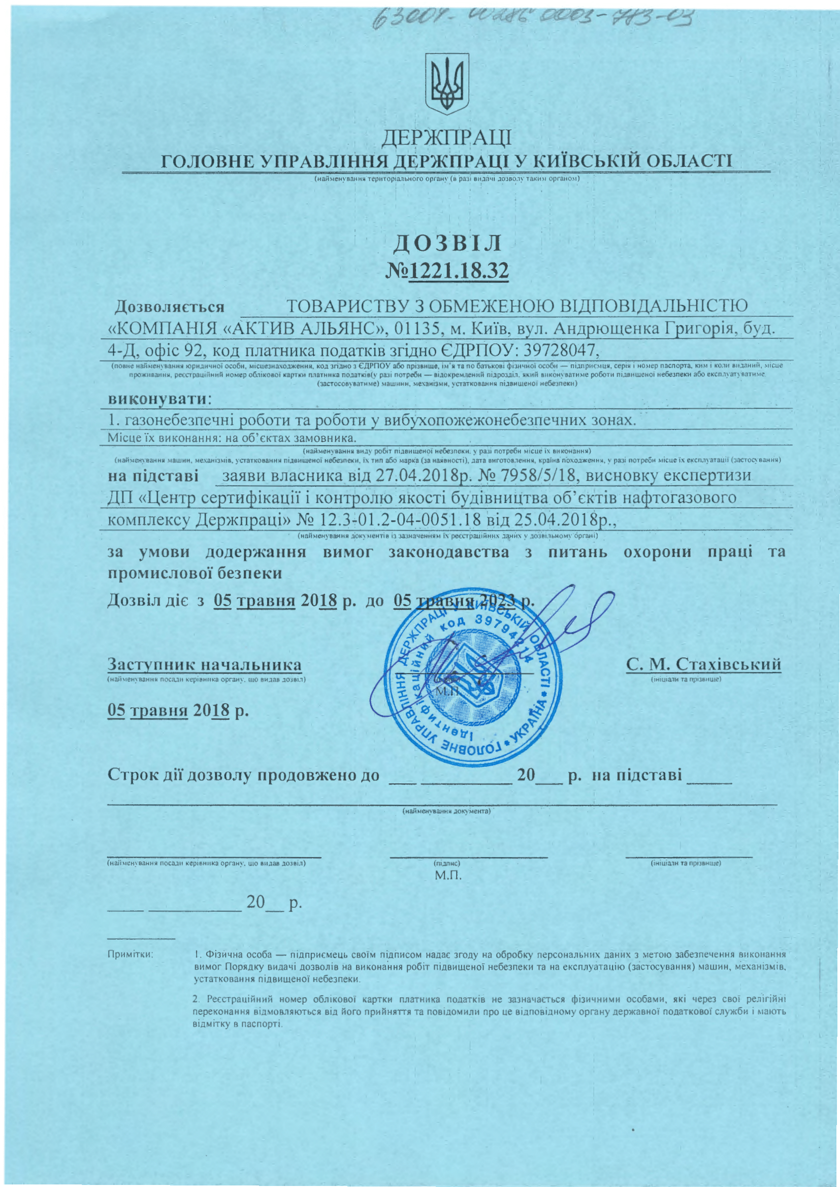 Permit to perform gas hazardous works and works in explosive and fire hazardous areas.